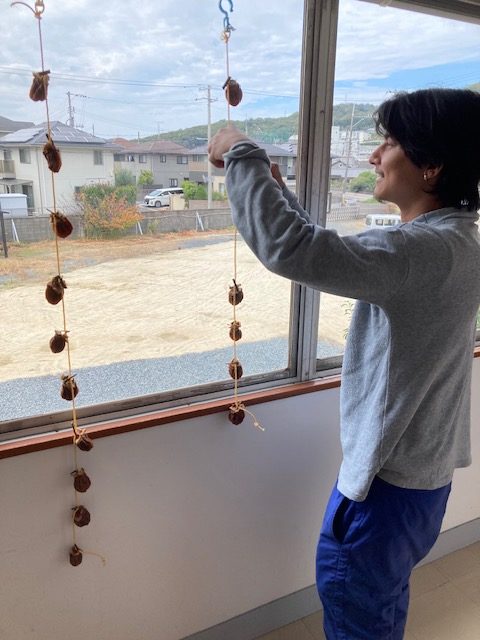 N先生が自宅で収穫した柿を吊るし柿にして持って来てくださいました♡